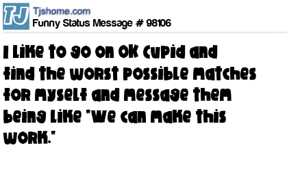 X is I like to go on OK Cupid and find the worst possible matches for myself and message them being like "We can make this work."