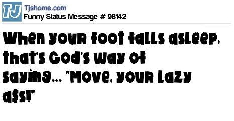X is When your foot falls asleep, that's God's way of saying... "Move, your lazy a$s!"