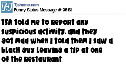 X is TSA told me to report any suspicious activity, and they got mad when I told them I saw a black guy leaving a tip at one of the restaurant