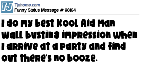 X I do my best Kool Aid Man wall busting impression when I arrive at a party and find out there's no booze.
