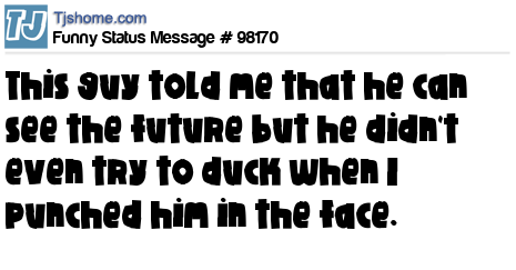 X This guy told me that he can see the future but he didn't even try to duck when I punched him in the face.