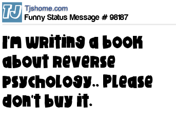 - # 165260 I'm writing a book about reverse psychology.. Please don't buy it!!
