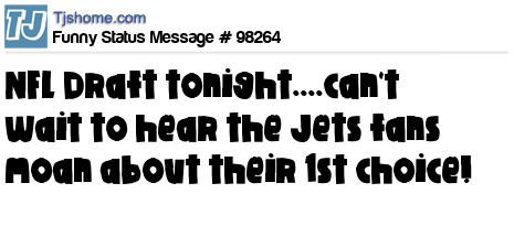 X is NFL Draft tonight....can't wait to hear the Jets fans moan about their 1st choice!