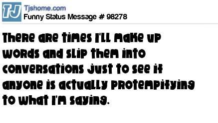 X There are times I'll make up words and slip them into conversations just to see if anyone is actually protempifying to what I'm saying.