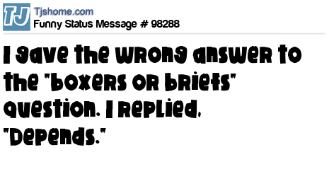 X  I gave the wrong answer to the "boxers or briefs" question. I replied, "Depends."