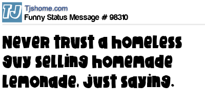 X says Never trust a homeless guy selling homemade lemonade, just saying.