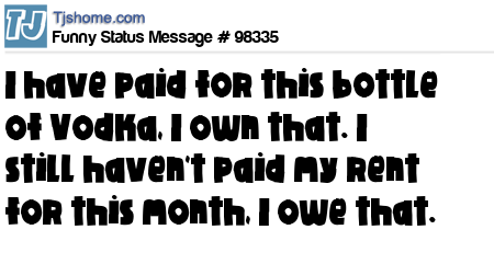 X says I have paid for this bottle of Vodka, I own that. I still haven't paid my rent for this month, I owe that.