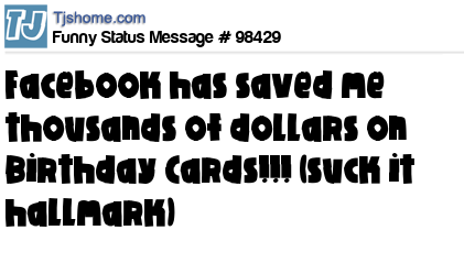 X says Facebook has saved me thousands of dollars on Birthday Cards!!! (suck it hallmark)