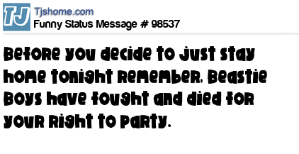 - # 48478 I'm thinking about going out tonight, because the Beastie Boys fought and nearly died for my right to party...
