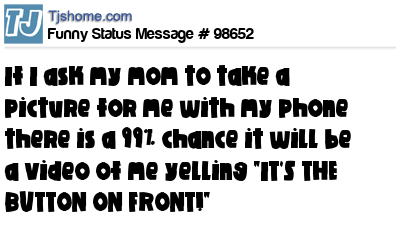 - # 115956 If I ask my mom to take a picture for me with my phone there is a 99% chance it will be a video of me yelling “IT'S THE BUTTON ON FRONT!
