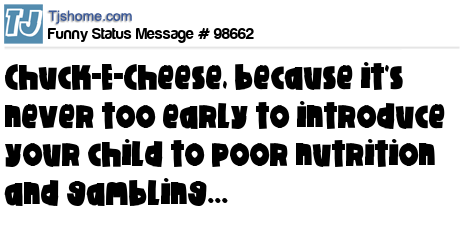 X Chuck-E-Cheese, because it's never too early to introduce your child to poor nutrition and gambling...