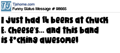 - # 127199 I just had 19 beers at Chuck E. Cheese's... and this band is awesome!