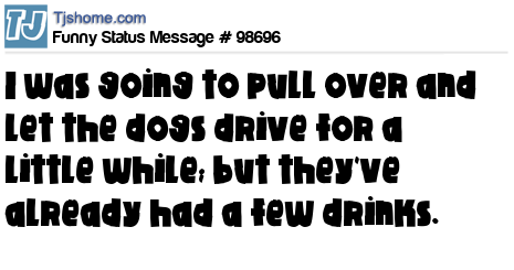 X I was going to pull over and let the dogs drive for a little while; but they've already had a few drinks.