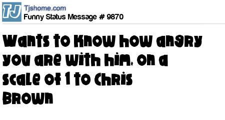 - # 52859 On a scale of one to Chris Brown, how angry are you?