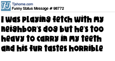 X I was playing fetch with my neighbor's dog but he's too heavy to carry in my teeth and his fur tastes horrible