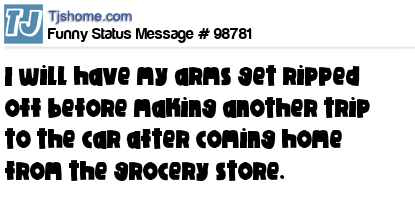 X is I will have my arms get ripped off before making another trip to the car after coming home from the grocery store.