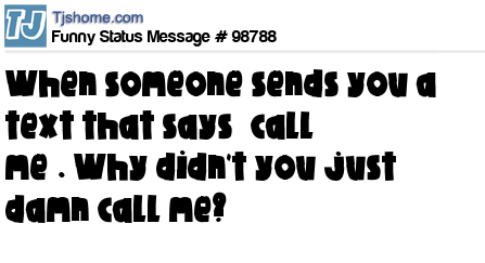 X is When someone sends you a text that says “call me”. Why didn't you just damn call me?