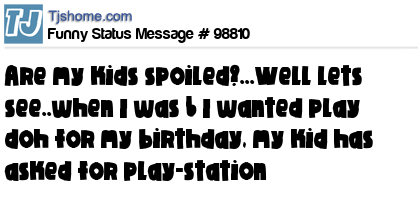 X is Are my kids spoiled?...Well lets see..when I was 6 I wanted play doh for my birthday, my kid has asked for play-station
