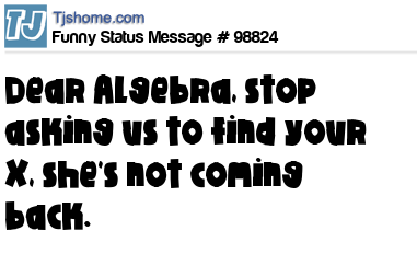 - # 129901 Dear Algebra, Please stop asking us to find your X She's never coming back and don't ask Y