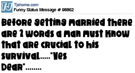 X  before getting married there are 2 words a man must know that are crucial to his survival....."Yes Dear"........