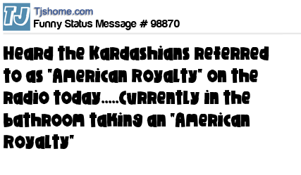 X Heard the Kardashians referred to as "American Royalty" on the radio today.....Currently in the bathroom taking an "American Royalty"