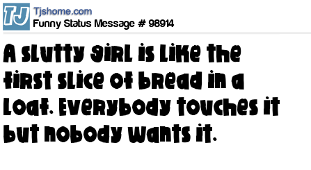 X A slutty girl is like the first slice of bread in a loaf. Everybody touches it but nobody wants it.