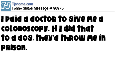 - # 31138 I paid a doctor to give me a colonoscopy...if I did that to a dog, they'd throw me in prison.
