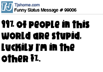 - # 29847 thinks that 99% of people in this world are stupid. Luckily I'm in the other 2%
