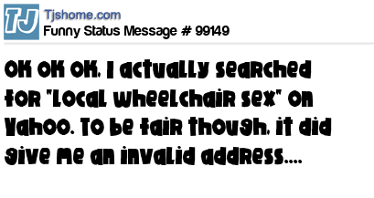 X is Ok ok ok, I actually searched for "local wheelchair sex" on Yahoo. To be fair though, it did give me an invalid address....