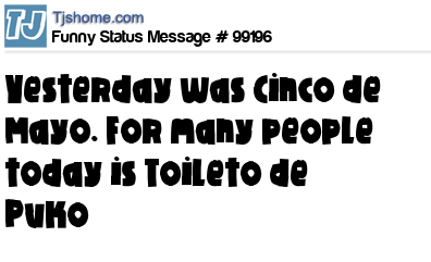 X Yesterday was Cinco de Mayo. For many people today is Toileto de Puko