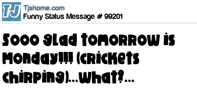X is sooo glad tomorrow is Monday!!! (crickets chirping)...what?...