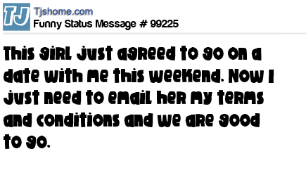 X says This girl just agreed to go on a date with me this weekend. Now I just need to email her my terms and conditions and we are good to go.