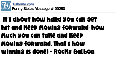 X is It's about how hard you can get hit and keep moving forward; how much you can take and keep moving forward. That's how winning is done! - Rocky Balboa