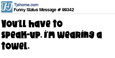 - # 199486 I’ve just been wearing a towel for 5 days so everyone thinks I showered.