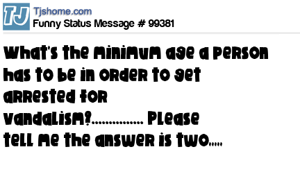 X What's the minimum age a person has to be in order to get arrested for vandalism?............... Please tell me the answer is two,,,,,
