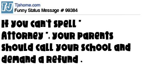 X is If you can't spell " Attorney ", your parents should call your school and demand a refund .