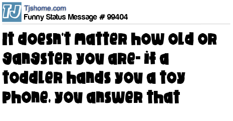 - # 59153 No matter how old you are, no matter how much of a bad ass are, if a toddler hands you their ringing toy phone, you answer it.