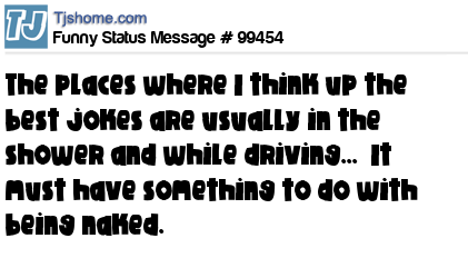 X The places where I think up the best jokes are usually in the shower and while driving... It must have something to do with being naked.