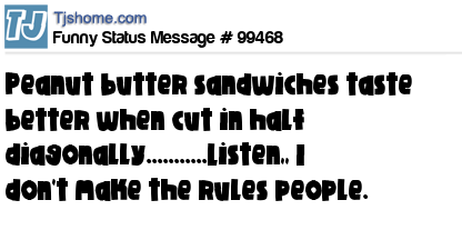 X Peanut butter sandwiches taste better when cut in half diagonally...........Listen,, I don't make the rules people.