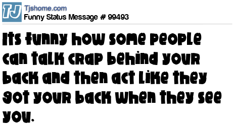 X says Its funny how some people can talk crap behind your back and then act like they got your back when they see you.