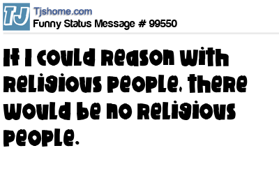 - # 151301 Don't religious people have the same said "blog" where they can be stupid without boring the rest of US? How "Christian" to talk crap about others...religious people are some of the BIGGEST hypocrites and most judgmental people I know of.