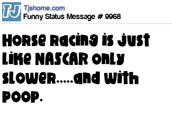 - # 185141 Horse racing is like NASCAR only slower and with poop.