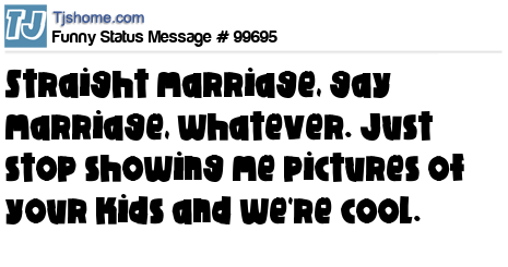 X is Straight marriage, gay marriage, whatever. Just stop showing me pictures of your kids and we're cool.