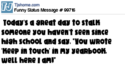 X says Today's a great day to stalk someone you haven't seen since high school and say, "You wrote 'keep in touch' in my yearbook, well here I am!"