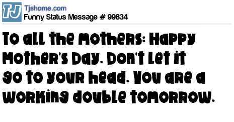 X says To all the mothers: Happy Mother's Day. Don't let it go to your head. You are a working double tomorrow.
