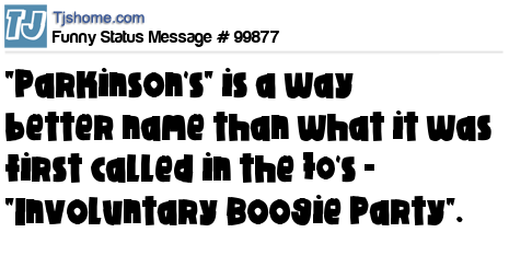 X is "Parkinson's" is a way better name than what it was first called in the 70's - "Involuntary Boogie Party".