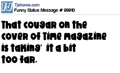 X says That cougar on the cover of Time magazine is taking' it a bit too far.