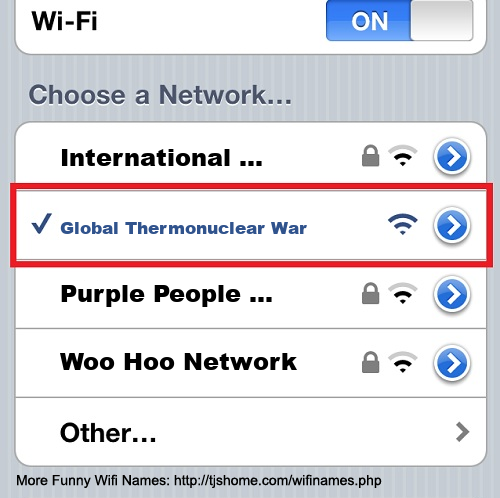 Funny WiFi Name #4114 [Global Thermonuclear War ]