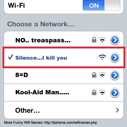 Funny WiFi Name #4340 [Silence...I kill you! ]