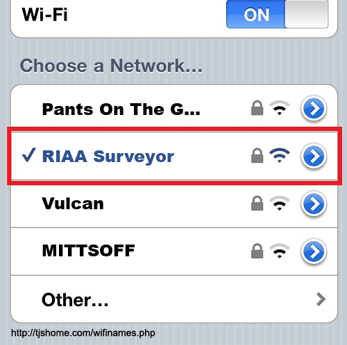 Funny WiFi Name #4352 [RIAA Surveyor ]